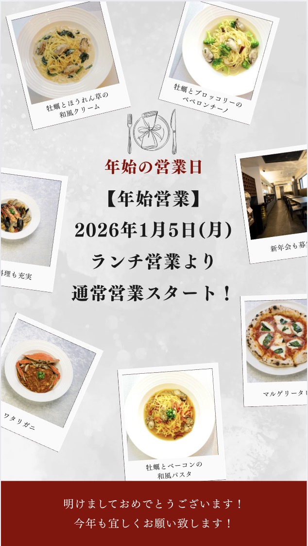 1月5日(月) ランチタイムより通常営業をスタート致します。